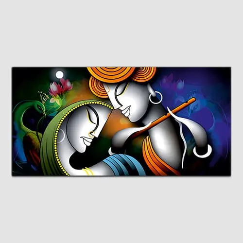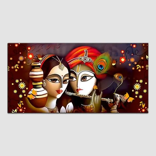 Radha Krishna Yellow-blue Canvas Wall Art Painting