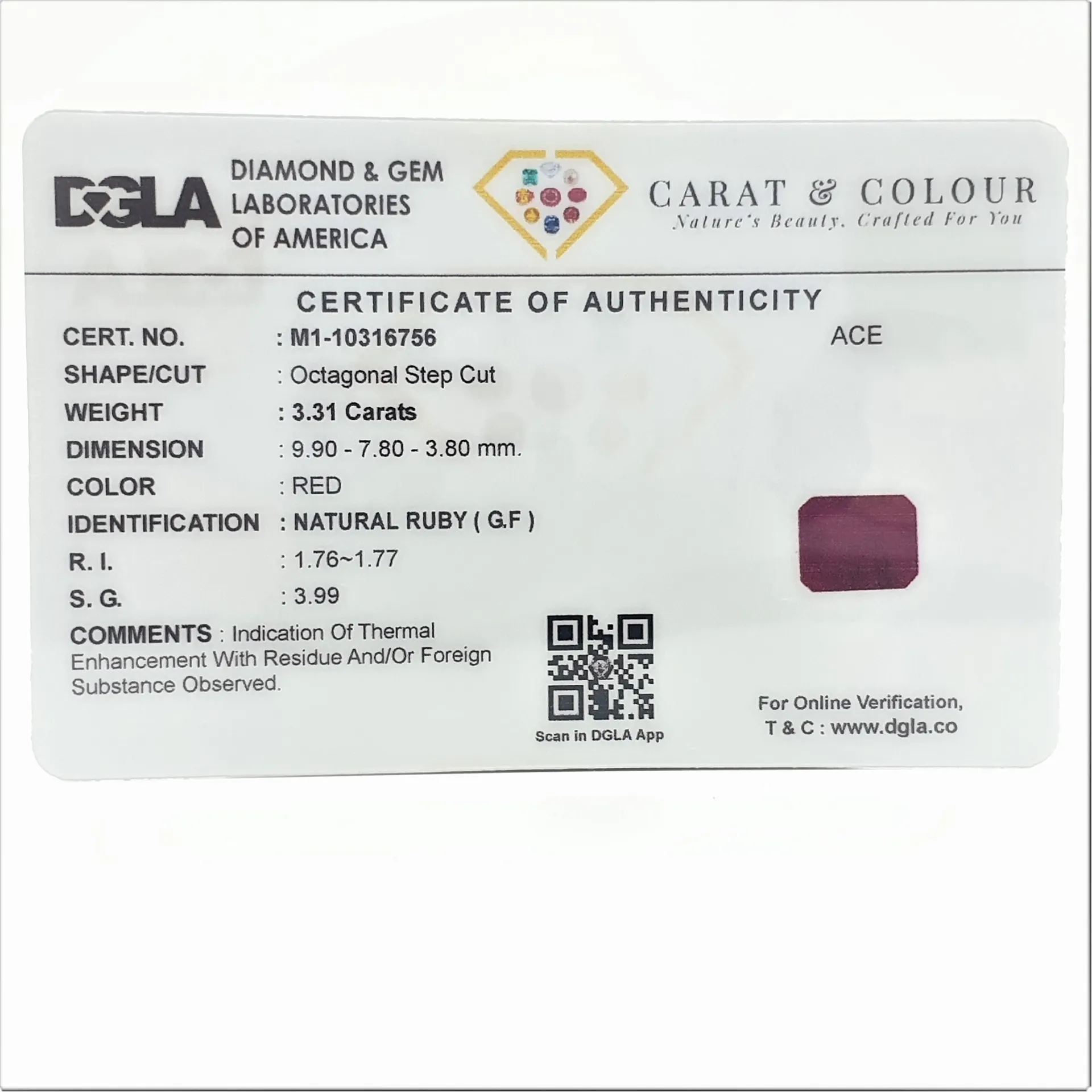 100% Genuine, Lab Certified, and Authentic