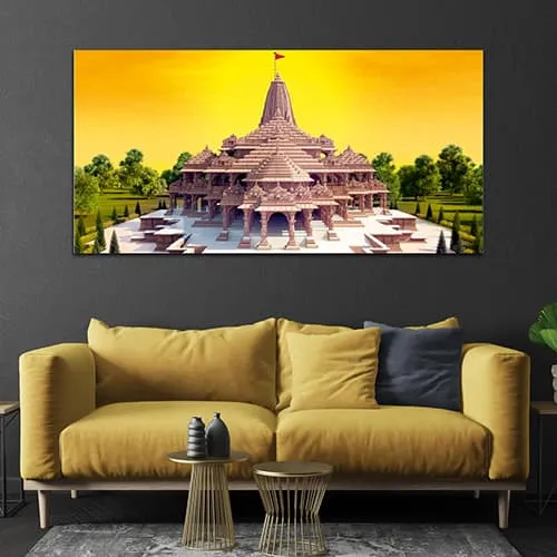 Shree Ram Temple Gold & Voilet Canvas Wall Art Painting